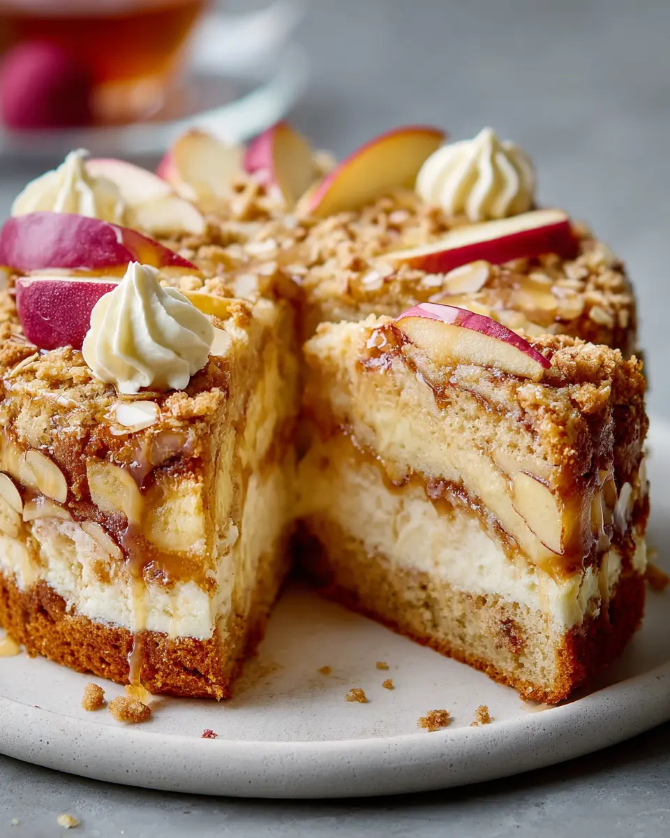 - Fruits frais : Ajoutez des rondelles de pommes ou quelques baies en décoration sur le dessus. Cela rend le gâteau plus vibrant et frais.