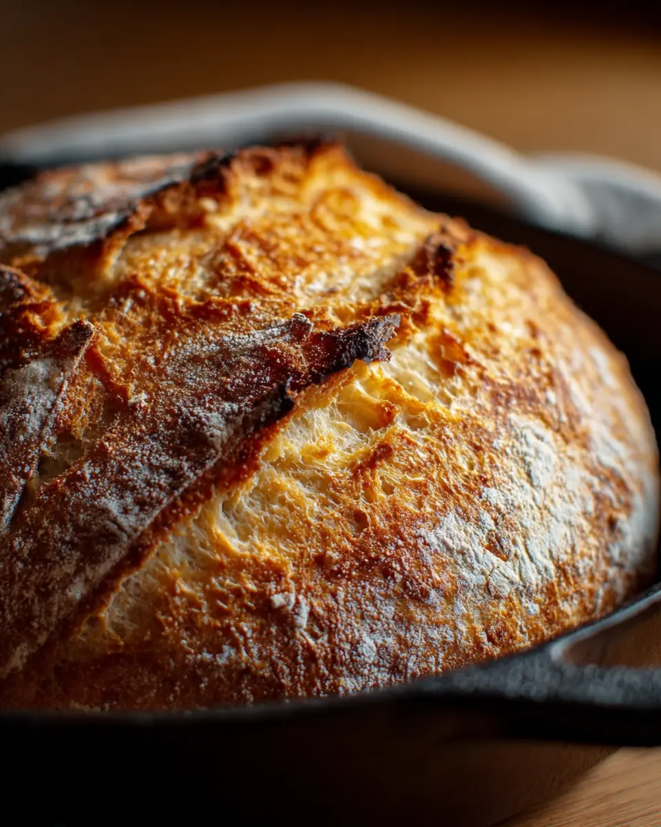 Utilisation de la chaleur : La cuisson du pain dans une cocotte préchauffée permet de maintenir une bonne humidité pendant les premières minutes, favorisant une croûte croustillante et une mie bien aérée.